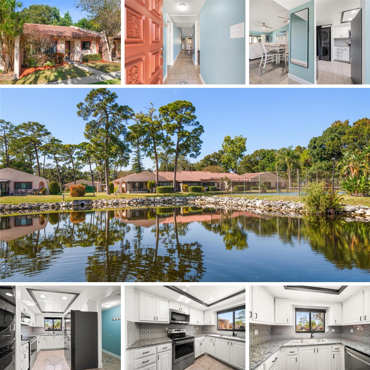 Welcome to this beautifully renovated, move-in ready villa tucked quietly and privately within the desirable Timberwoods community in Seminole. From the moment you step inside, the bright and stylish interior makes an impression, beginning with a stunning white kitchen featuring granite countertops, a custom tile backsplash, stainless steel appliances, and a designer ceiling that adds a touch of sophistication. The spacious family room boasts vaulted ceilings and sliders that open to a screened patio overlooking peaceful greenspace—perfect for relaxing mornings or evening gatherings. The primary bedroom offers comfort and privacy with a large walk-in closet and an updated ensuite showcasing a custom-tiled walk-in shower. The additional bedroom is equally spacious and bright, complete with a generous walk-in closet, and shares an updated hall bath with a tub/shower combo. Timberwoods residents enjoy excellent schools and fantastic community amenities including a sparkling pool, clubhouse, tennis courts, and pickleball. Ideally located near dining, shopping, and the area’s beautiful beaches, this villa offers both convenience and an exceptional lifestyle.